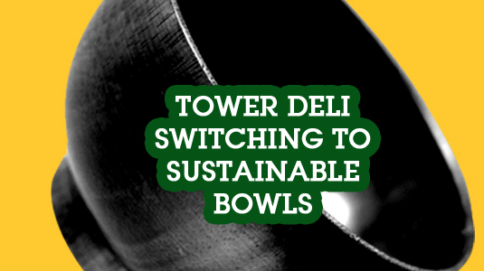 Stevenson Tower Deli is implementing yet another way to become more sustainable: Old "For Here" foam bowls will be replaced with plastic reusable bowls (foam bowls will still be available for "To Go" orders).