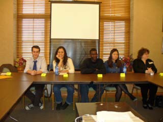 At the EIUAA Chapter meeting on April 5th, four International students, one from each continent shared the impact of their families on their success. From left to right in second picture on third row are Hawel Davies (whale), Caroline Pelaez-Morales (Columbia), Abdoulaye Traore (Burkina Faso), Kinuko Tanaka (Japan), and Sue Songer (International Students Advisor).
