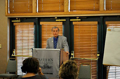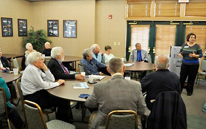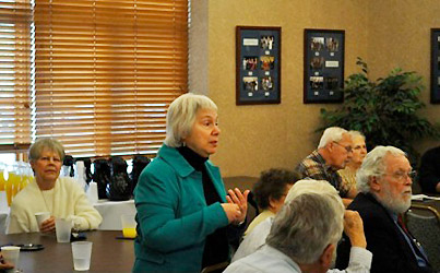 At the April 8, 10 Chapter Meeting in the Neal Welcome Center, Representative Chapin Rose provided comprehensive information why the state currently experiencing nearly 13 billion budget deficits and some suggestions to reduce that amount. Following Representative Rose, Rachel Fisher (Interim Director, EIU Student Community Service Office) explained that her goal is to stimulate 12,000 EIU students to devote at least one hour each month to service activities. Ms. Fisher requested annuitants to suggest community service activities for which EIU students might volunteer.