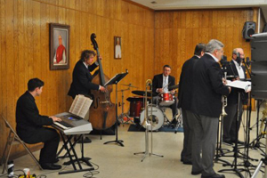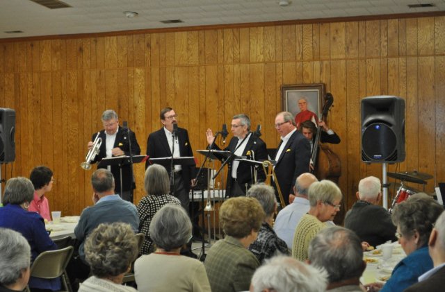 We enjoyed an exuberant, humorous and melodious performance by the Four Voices Entertainment, composed of annuitant Al Horney along with four voices, rhythm section, and sound staff.
