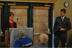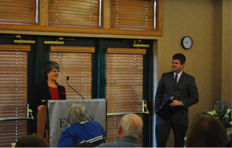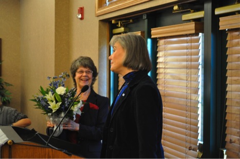 II. Business Meeting: Vice-President Sterling (a) thanked Mike Strader and Chris Sims for their service to the EIUAA Board, (b) presented Jayne Ozier with a bouquet of flowers together with her expression of thanks for Jayne's service as EIUAA President, and (c) presented for Chapter approval the following slate of new Board members for the period 2013-2016: