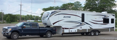 Dollie and I have embraced the hook-up culture and are sleeping around a LOT lately. Logged 9000 miles in April on a trip to Florida, California, Idaho, and Montana, then sold the 2007 Starwood and traded up to this 2014 Aspen. Eight feet longer, a ton heavier, and one more slide, but the towing mileage is really not much worse. Took a shakedown cruise to the Upper Peninsula in June for the solstice, with grandkids in steerage, and have been to Carlyle Lake several times since. Also the garden spots of Elkhart, IN, and Wheeling, W VA. Our palace on wheels!