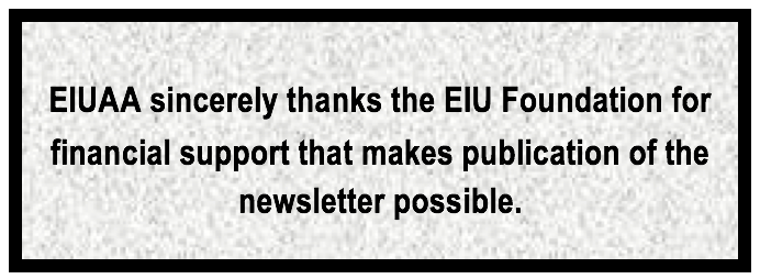 I have enjoyed serving as your EIUAA President this year. Thanks for the opportunity. You are a wonderful group of people who continue to hold EIU in high esteem.