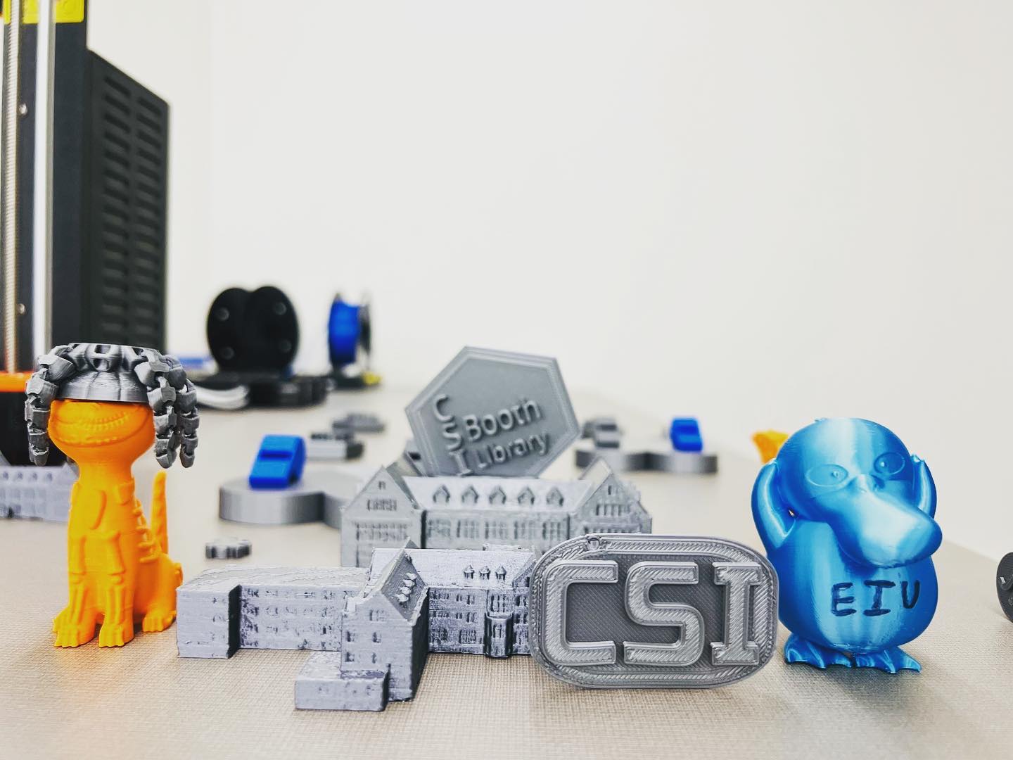 The Center for Student Innovation (CSI) located on Booth Library's 1000-N level (First Floor) features an Active Learning Classroom for faculty, Three Podcasting Rooms, Virtual Reality Lab, Resin and Filament 3D Printers, Creative Reality Lab, and Landing Space for events or study sessions.