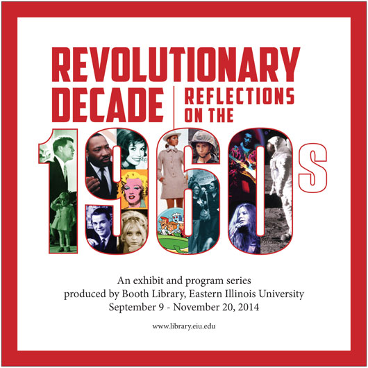 Booth Library presents our major fall semester exhibition and event series: “Revolutionary Decade: Reflections on the 1960s.” We invite you to join us as we take a fresh look at the achievements, tragedies, triumphs, extraordinary personalities, and everyday lives of average people during what was arguably one of the most turbulent and eventful decades of the 20th century. We have filled the library with exhibits exploring numerous aspects of this fascinating decade as Americans experienced it -- including developments in the worlds of music, literature, visual arts, science and technology, politics, and social movements. A broad array of scholarly presentations, film screenings, and entertainment events has been planned. Please peruse this website and/or pick up a copy of our program booklet to discover the many experiences we have in store!