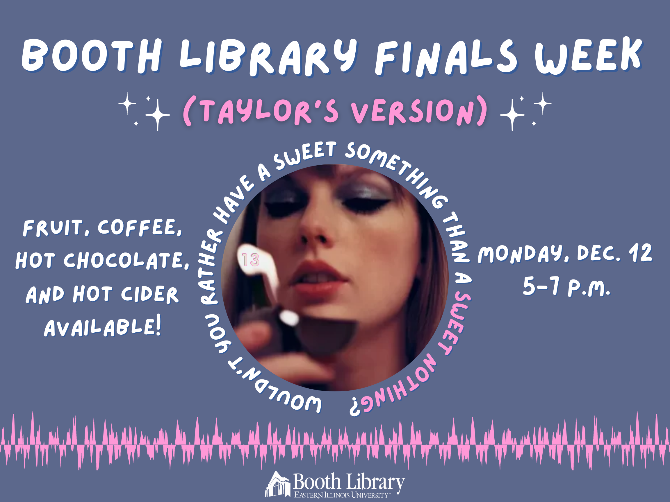 At 5 p.m. Monday, Dec. 12, free fruit, coffee, hot chocolate and cider will be served to students while supplies last. Treat yourself to a sweet something, otherwise you’ll have “Sweet Nothing”!