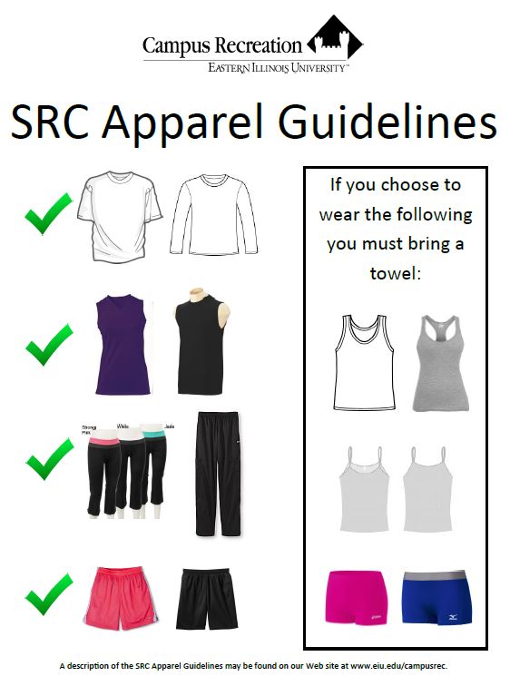 - Tank tops and spandex shorts may be worn if accompanied by a towel to be used to cover all upholstery where the back/chest/legs touch equipment and mats.