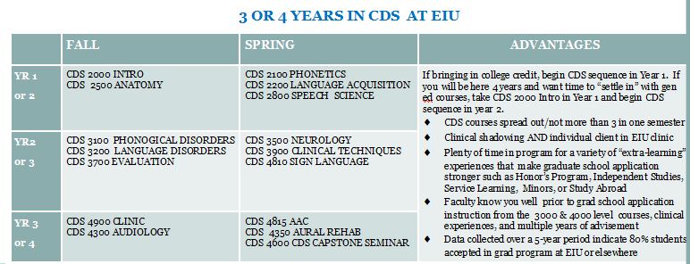 A 2-page pdf handout is available to download. Information about why students should consider studying Communication Disorders and Sciences at EIU is included on the first page while information about applying to graduate school and pros and cons of 2, 2 1/2 and 3-4 year study plans in the major are on the second page.
