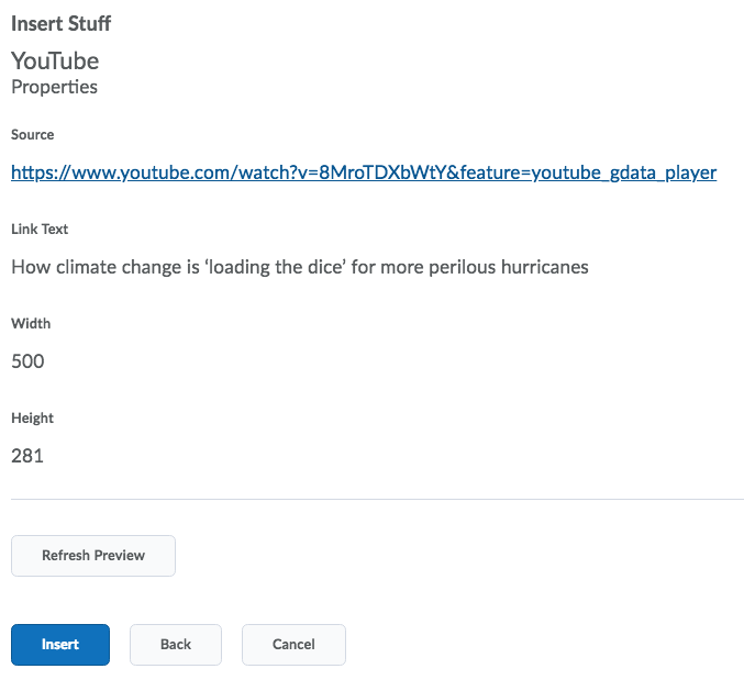 - Enter the title you want to appear as the title of the link within the module. Then, select the "Insert Stuff" button on the left of the formatting toolbar.