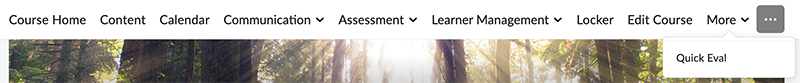 - Quick Eval - Quick Eval enables you to use a single location to view all student submissions that are awaiting evaluation. Submissions made to Assignments, Quizzes, and Discussions are displayed in a list and can be selected to take you directly to their assessment page.