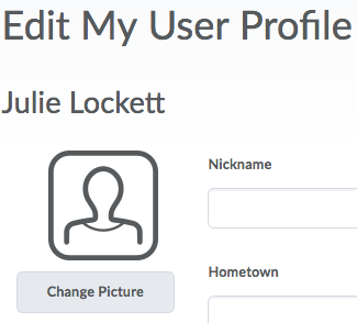 - Your profile picture displays in all your courses in areas such as Discussions and Classlist. If you do not upload a profile picture, the navbar displays your initials in the user-profile badge. This displays in the Brightspace navbar and Activity Feed.