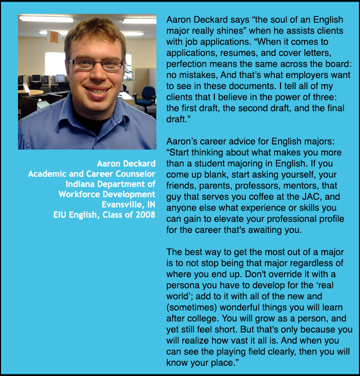 Graduates of EIU’s English program who pursue careers in human resources hold positions including Senior Staffing Manager at a California financial services firm.
