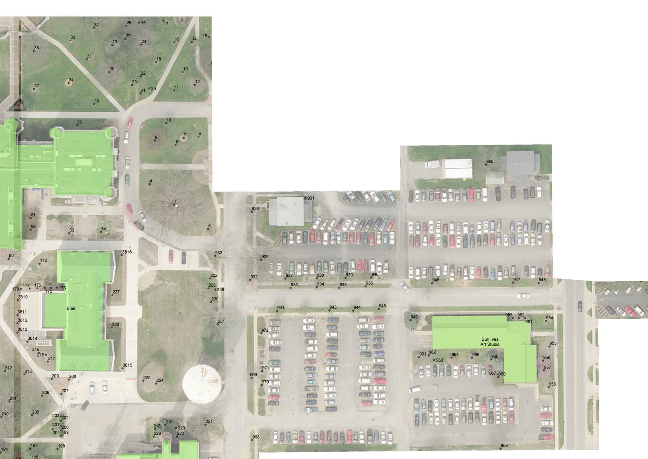 Following two years of collecting and recording the identities and locations of over 4,000 trees on campus, Steven Di Naso, Vince Gutowski, Lorien Lemmon and Kyle Boatright created a carbon sequestration model of the campus using tree biomass. A side benefit of their study was the creation of a campus tree inventory map showing tree locations.