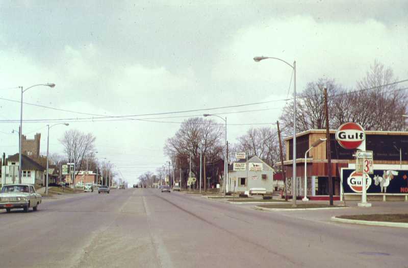 Lincoln looking west from Eleventh Street in April, 1969. Here we are looking west from Eleventh Street, toward Old Main and four lanes. It was just a nice little country lane before it became a "Hamburger Alley."
