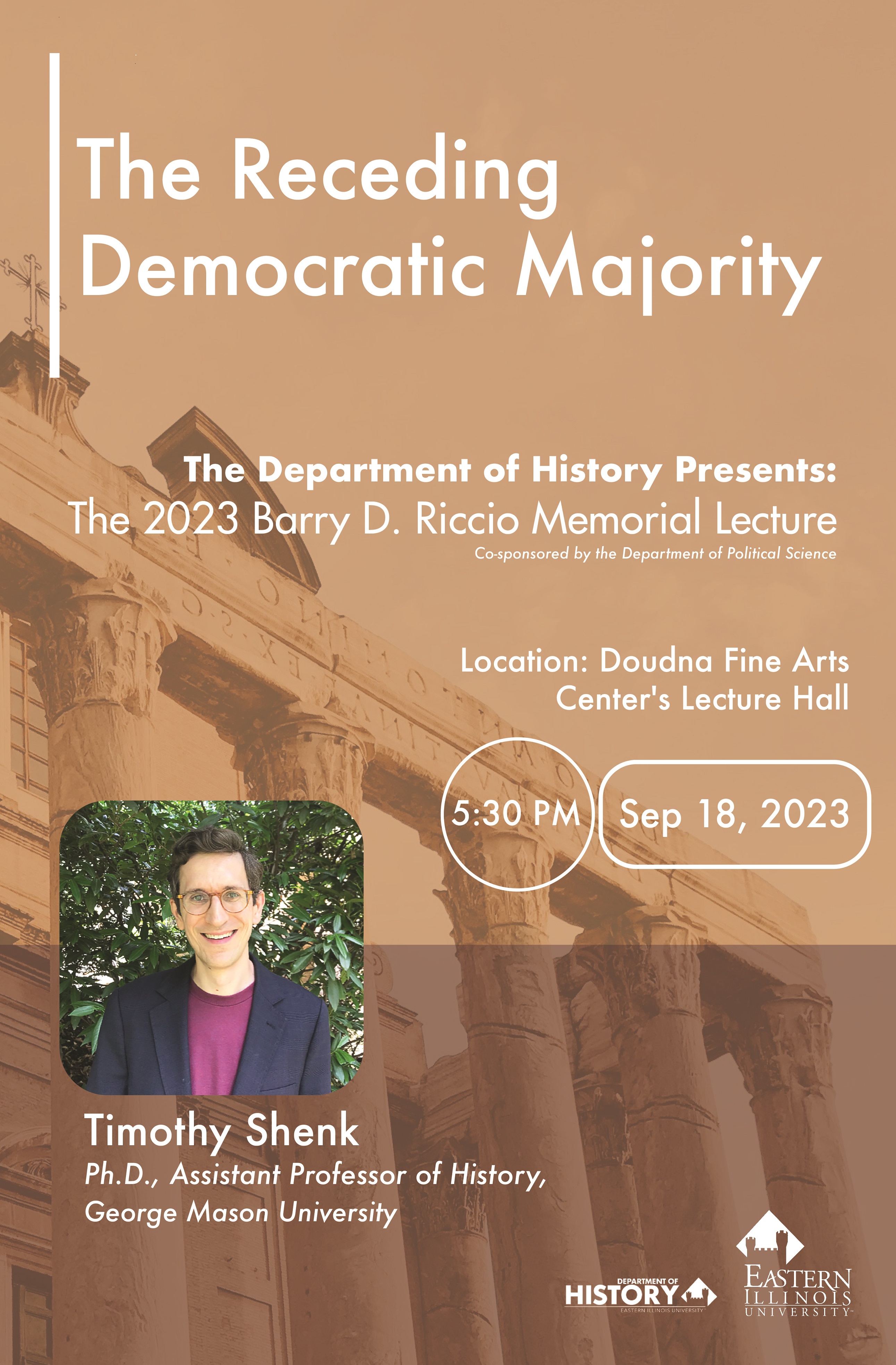 Barry D. Riccio joined the Eastern Illinois University History faculty in 1995. The author of Walter Lippmann, Odyssey of a Liberal (1994) and numerous articles, Barry was a devoted student of American ideas, politics, and culture. At Eastern he proved almost immediately himself an outstanding teacher and wonderful colleague. Following Barry's death from cancer in 2001 at the age of 46, his friends, family and colleagues established the Barry D. Riccio History Fund in his honor.