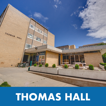 An all-male, four-story building with pod-style bathrooms, sharing common facilities, including a front desk, with Lincoln and Stevenson Halls. Additionally, it’s one of five halls that is open during breaks.