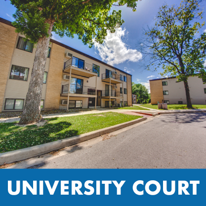 Fully furnished two-bedroom apartments that combine the benefit of on-campus housing with the comforts of apartment living. University Court residents must be out of high school for 2 years or be at least 21 years of age.