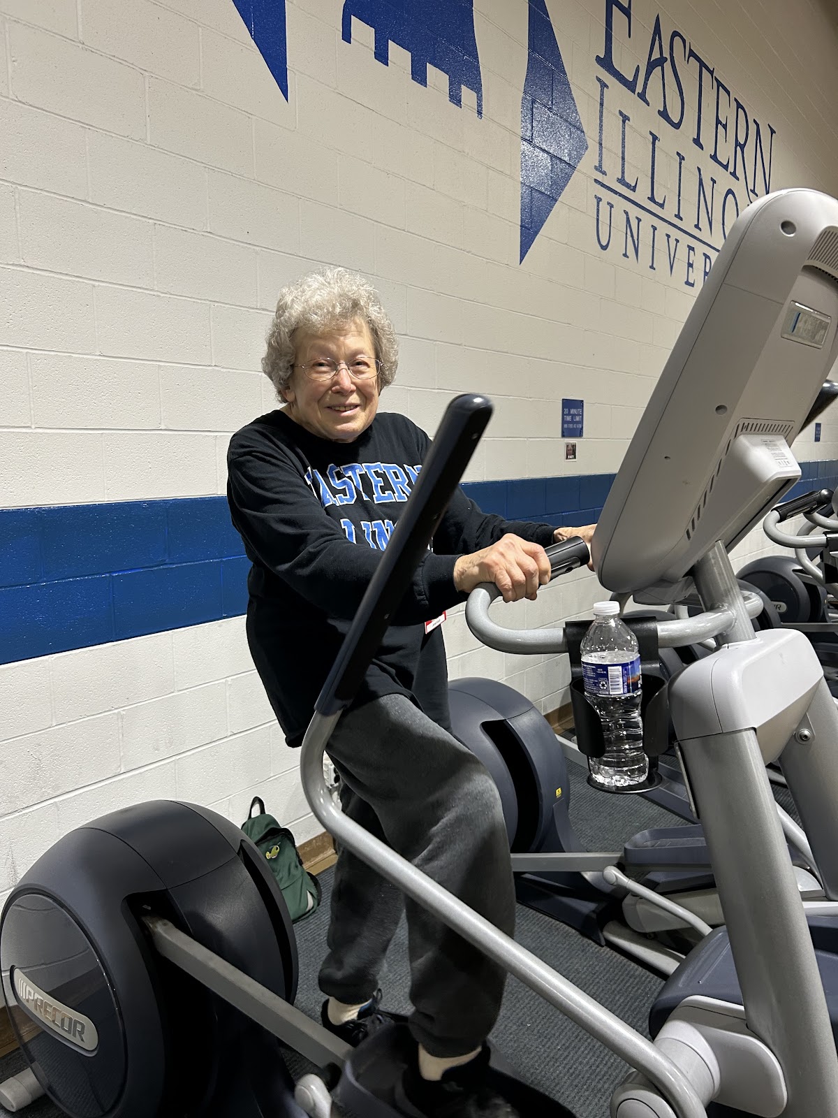 My son, vice president of EIU enrollment, told me about the Adult Fitness Program (AFP) and encouraged me to join. He said, “You have to try this great program. It’s awesome and super cheap!”. That’s what lead me to the AFP, but my health issues really motivated me to be more active and improve my fitness overall.