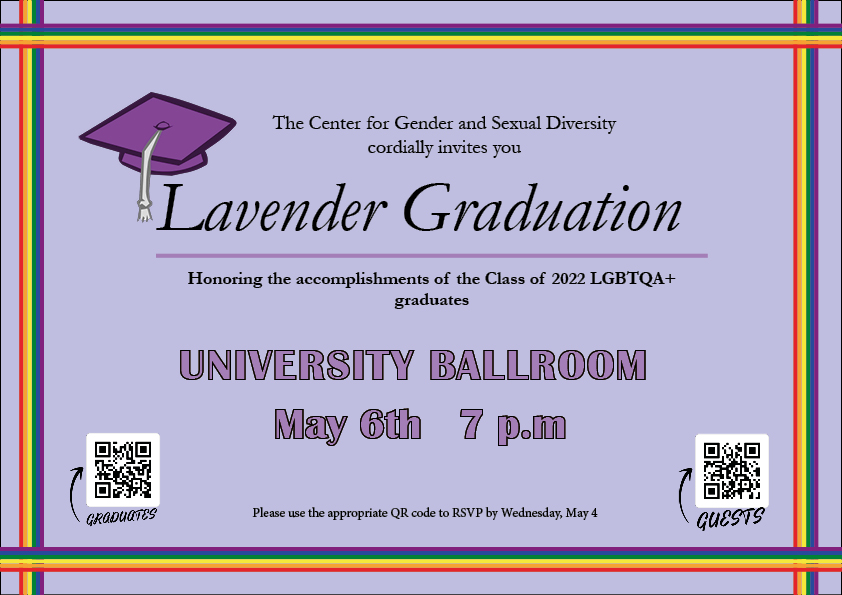 We encourage all GSD and ally students graduating in either the spring or the following fall semester to participate in the Lavender Graduation Celebration.