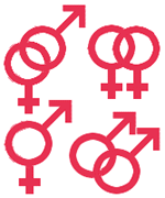 times. The pointed Mars symbol represents the male and the Venus symbol with the cross represents the female. Since the 1970s, gays have used double interlocking male symbols to represent gay men. Double interlocking female symbols are often been used to symbolize lesbianism, but some feminists have instead used the double female symbols to represent sisterhood among women and three interlocking female symbols to denote lesbianism. In the 1970’s, some lesbian feminists used three interlocking female symbols to represent their rejection of male standards of monogamy.
