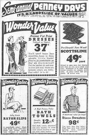 This ad from September 10, 1936 shows buyers exactly what they will need to spend to purchase clothing it displays.