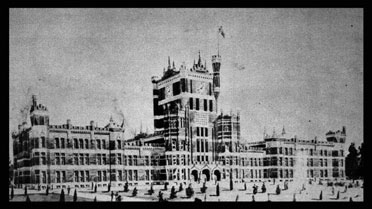 Governor Altgeld and the Normal School building trustees approved plans that called for constructing Old Main of Indiana Bedford limestone. Chicago contractors Angus and Gindele began construction in the spring of 1896. When the contractors suffered financial difficulties during the panic of 1897, the trustees released Angus and Gindele from their contract and awarded the remaining work to local contractor Alexander Briggs. Briggs oversaw construction until the job was completed in 1899. |