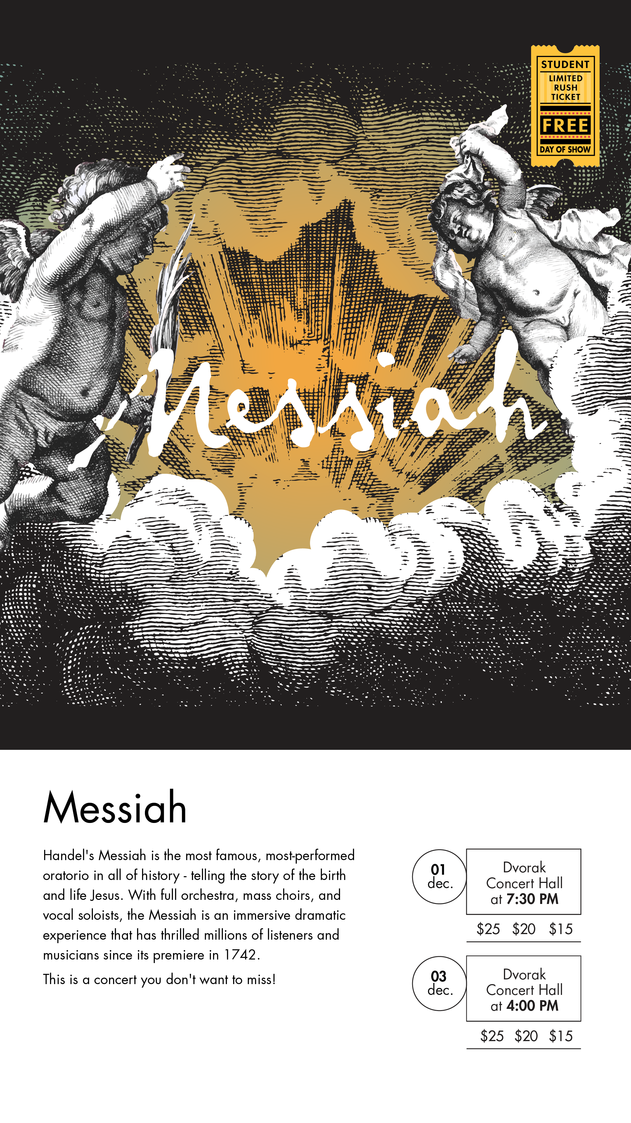 Join us for the most famous oratorio in history. Handel’s Messiah tells the story of the birth and life of Jesus, with full orchestra, mass choirs, and vocal soloists. There will be two performances of this masterpiece on Friday, December 1st at 7:30pm and Sunday, December 3rd at 4:00pm. Get your tickets now at www.doudnatix.com.