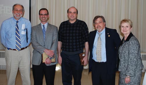 | Shown, from left to right, are John Best, Jonathan Blitz, Sean Peebles, Noel Brodsky and Mary Anne Hanner, dean of Eastern's College of Sciences. |