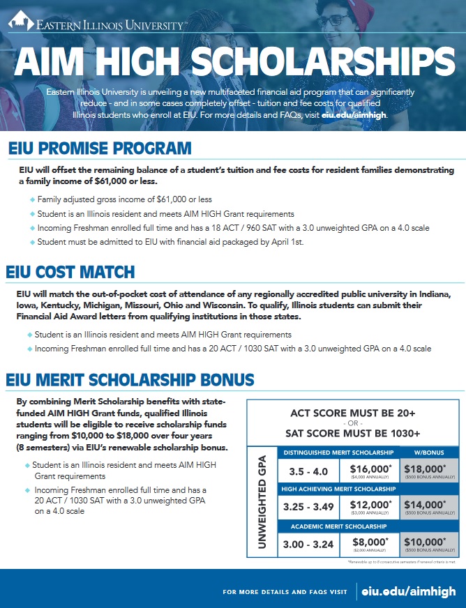 Prospective students in Illinois are encouraged to visit EIU’s AIM HIGH website at https://www.eiu.edu/aimhigh/ for additional information.