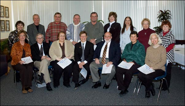 Honorees attending the recent EIU Years of Service Luncheon included, from left to right: front row -- Vicki Hampton, James Johnson, Sharon Nichols, Robert Augustine, Mark Shaklee, Kathleen Phillips and Sandra Bingham-Porter, all with 30 continuous years of service; second row -- Nancy Page, David Arseneau, Allan Rathe, Robert Black, Larry Farris, Nancy Dole, Patricia Shonk, Anita Thomas and Cheryl West, all with 25 years of continuous service.