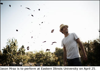 The event, part of Mraz's Music Magic and Make Peace Tour, will begin at 8 p.m., with doors opening at 7 p.m., in Lantz Arena. Tickets are $10 for EIU students with university ID and $13 for the general public. They may be purchased between 9 a.m. and 3 p.m. weekdays through the MLK Jr. Union Ticket Office, located on the second floor, west wing. For information, phone 217-581-5122.