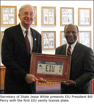 Secretary of State Jesse White today announced that motorists can now order vanity and personalized Eastern Illinois University specialty license plates. Those license plates were previously only available with numeric characters, but now they are available in letter or letter and number combinations.