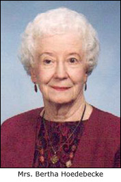 Mrs. Hoedebecke’s husband of nearly 50 years, Larry, passed away in December 2004 at the age of 101.