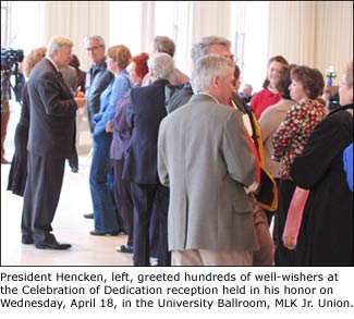 President Hencken started as a student worker washing dishes in Thomas Hall food services. Then, as a grad assistant, he opened both Taylor Hall and Stevenson Tower. After graduating from Eastern in August 1967 with his master's in counseling and student development, he became the director of housing and dining in 1975. He moved up to associate vice president for student affairs in 1989. Three years later, he became the vice president for student affairs. He was named president in 2001.
