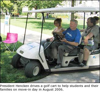 One such time is during Move-in Day. Last August, Hencken shuttled students from Carman Hall to Textbook Rental, to the Martin Luther King Jr. University Union to get their Panther cards, to Booth Library to check the Internet and back to Carman in a six-person golf cart before he turned to them and introduced himself.