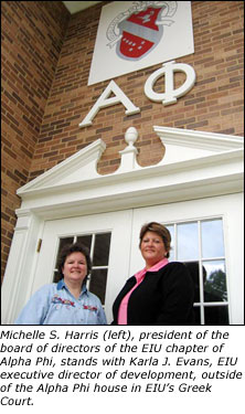 Michelle S. Harris of Sullivan, a 1980 graduate of EIU, is a charter member of the local Alpha Phi chapter, known as the Zeta Alpha chapter. She now serves as president of its board of directors.