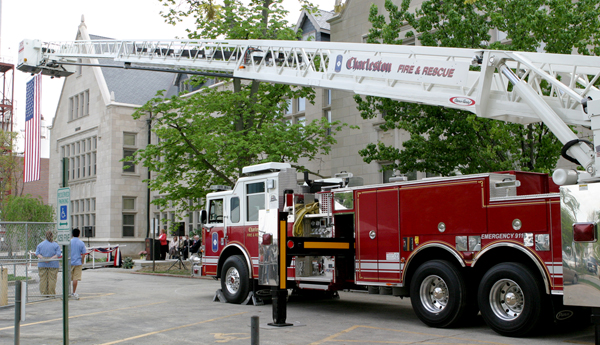 On April 24, 2006, people from throughout campus and the community gathered outside of Blair Hall to rededicate the building, two years after it was nearly destroyed by fire.
