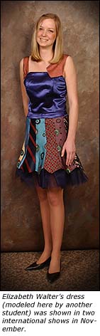 Earlier this month, Walter’s dress, called “All Tied Up,” was accepted into two prestigious international shows: the International Textile and Apparel Association conference in Washington, D.C.; and the Chicago Fashion Group, which based its winners on design as well as grade point average.