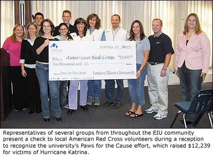 Representatives from throughout Eastern Illinois University’s campus gathered Friday to donate more than $12,000 to the American Red Cross to assist victims of Hurricane Katrina.