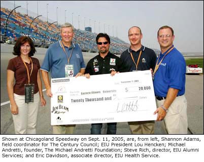 The Michael Andretti Foundation donated $20,000 from a $100,000 fund provided by Jim Beam to Eastern Illinois University at Chicagoland Speedway Sunday, Sept. 11.