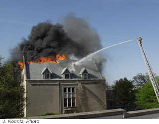 It is believed that a natural draft, traveling from outside toward the inside, carried the smoke, unseen, upward through the wall cavity and into the unoccupied attic space above the dormer. In this scenario, the fire would have developed very slowly and, as such, could easily have gone unnoticed until visible smoke and flame began to show at the roof, officials said.