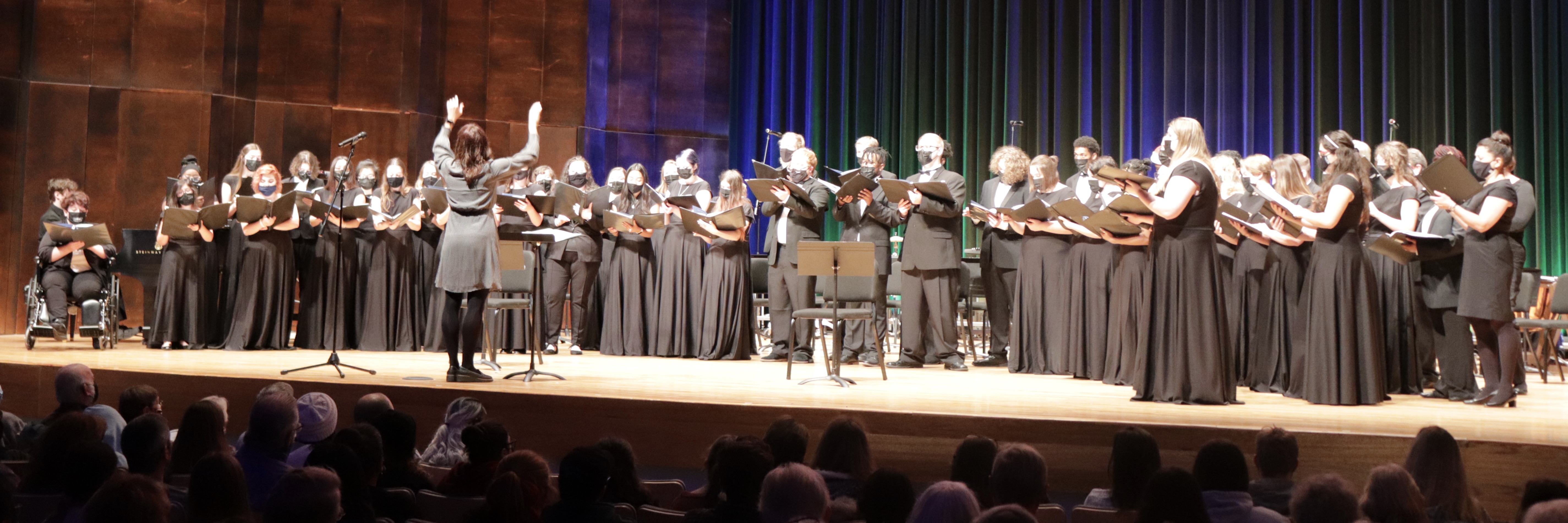 Concert Choir is a select choral ensemble open to students in all majors by audition that performs a broad range of accompanied and unaccompanied choral literature. Members of Concert Choir will have the opportunity to advance music literacy skills, vocal technique, and their understanding of choral music in the context of other disciplines and its place in history.