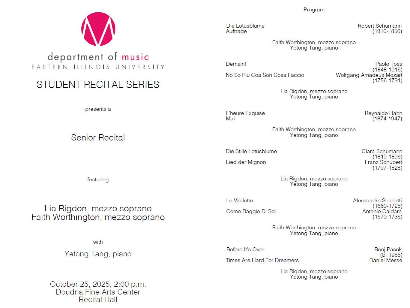Student Recital - Lia Rigdon and Faith Worthington, voice - October 25, 2025
