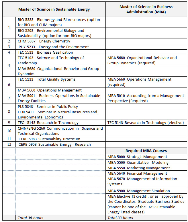 This dual degree program provides students the opportunity to obtain degrees in both the Master of Business Administration (Applied Management Option) and Master of Science in Sustainability. This allows candidates to develop advanced knowledge and skills in leadership, management, and business functions and that complement that expertise with leadership and management skills in the energy industry.