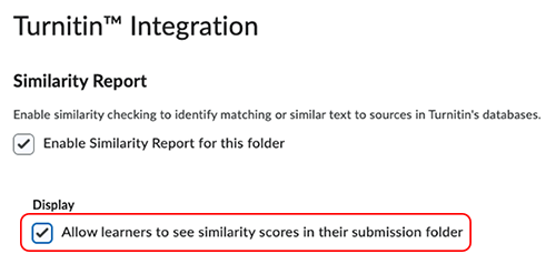 Select the checkbox if you want to Allow learners to see similarity scores in their submission folder.
