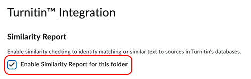 Select the checkbox to the left of Enable Similarity Report for this folder.
